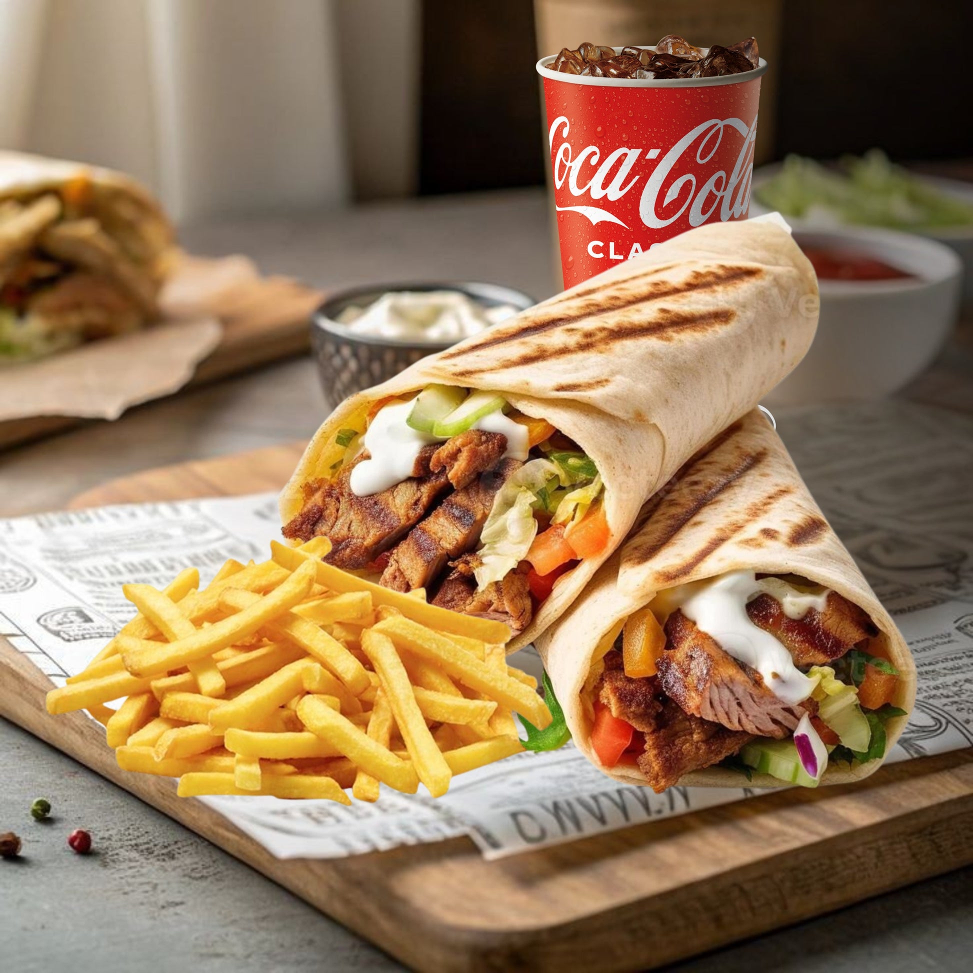 Includes One Beef Gyro Wrap, Fries, and a 16 Oz Fountain Drink